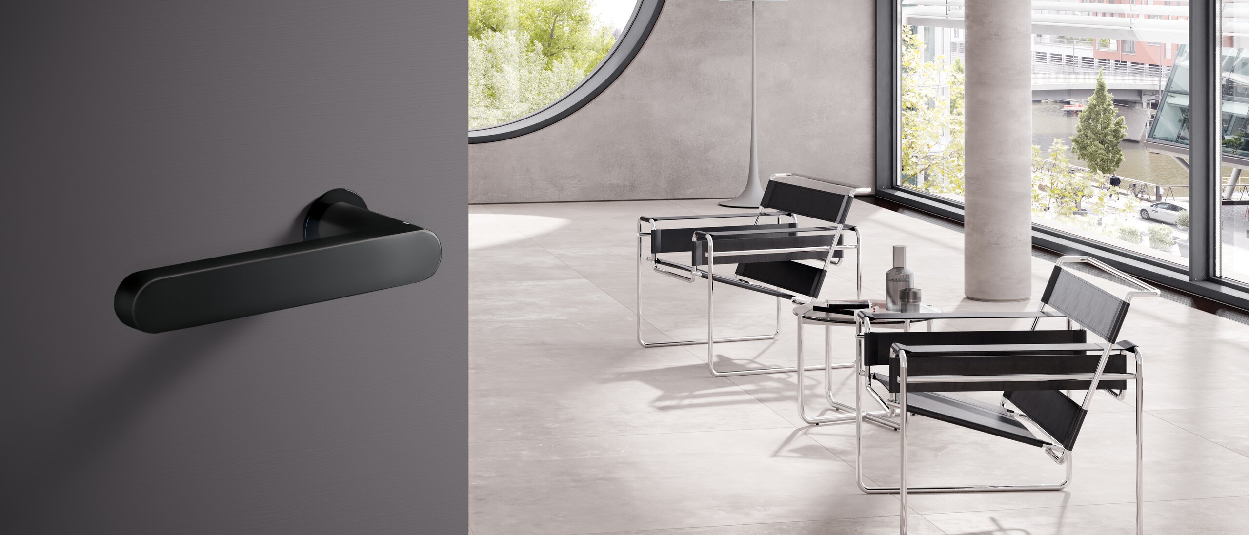 The door handle 270 is a timeless, elegant and deliberately understated design component on the door. Its design is characterised by its puristic form, clear lines and geometric features. The system, which features the mini rosette of the lever handle, consistently reflects a reduction to the essentials. This results in a particularly harmonious appearance on the door. The high quality, robustness and precision as well as the expressive design and intelligent technology make the 270 fittings series the ideal solution for highly frequented sanitary areas or private bathrooms.