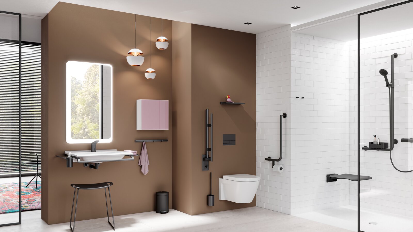 From waste bins and shower handrails to toilet brush units and other accessories – System 900 combines the highest design standards with functionality and intuitive usability. System 900 is the multiple-award-winning answer to the complex requirements of accessible bathrooms. The products are well thought-out down to the smallest detail – they score highly through their functionality, durable quality, clever assembly technology, and hygienic design. The products offer support and safety in everyday life and increase users’ independence. Users benefit from the products in everyday life, especially if their strength or mobility is reduced.