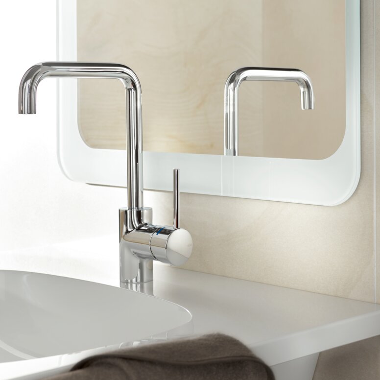 Depending on the specific requirement, some fittings are available as either a manually operated single-lever washbasin mixer or as a sensor-controlled fitting. Functionality and methods of operation differ in these two variants - whilst their design language has a single voice.